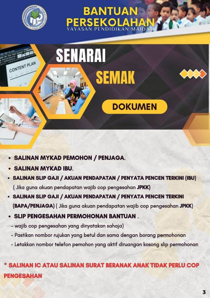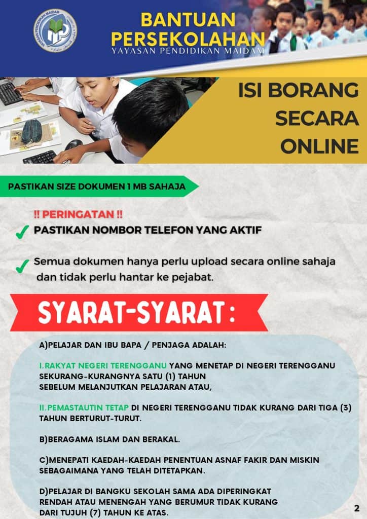 - Syarat utama bagi permohonan bantuan persekolahan 2026 adalah pemohon mestilah penerima bantuan MAIDAM.