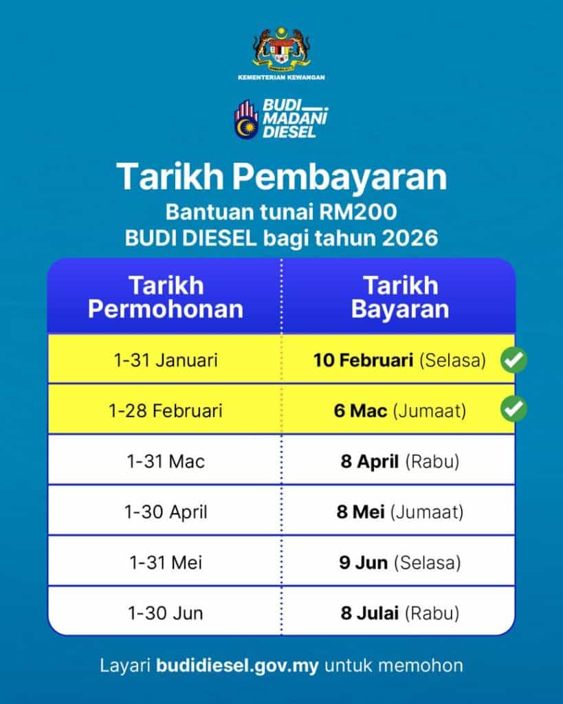 Baca juga: Budi Madani Diesel – RM300/sebulan Mulai 17 Mac 2026