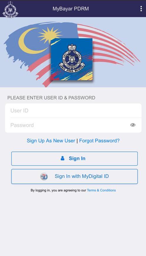 - Klik butang SIGN UP AS NEW USER untuk proses Pendaftaran.