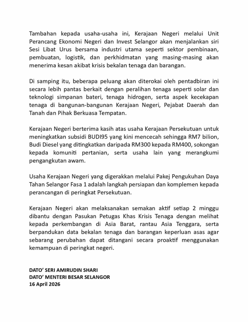 Secara umumnya, tarikh bantuan Pakej Pengukuhan Daya Tahan Selangor akan mula disalurkan mulai Jun 2026 untuk fasa pertama, kecuali: