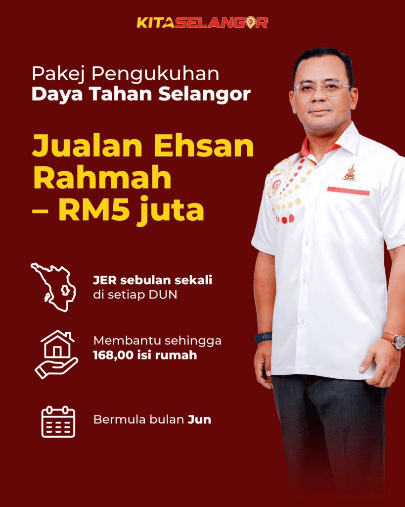 | Jelajah Ehsan Rahmah | – Sebulan sekali di setiap kawasan DUN seluruh Selangor | RM5 juta |