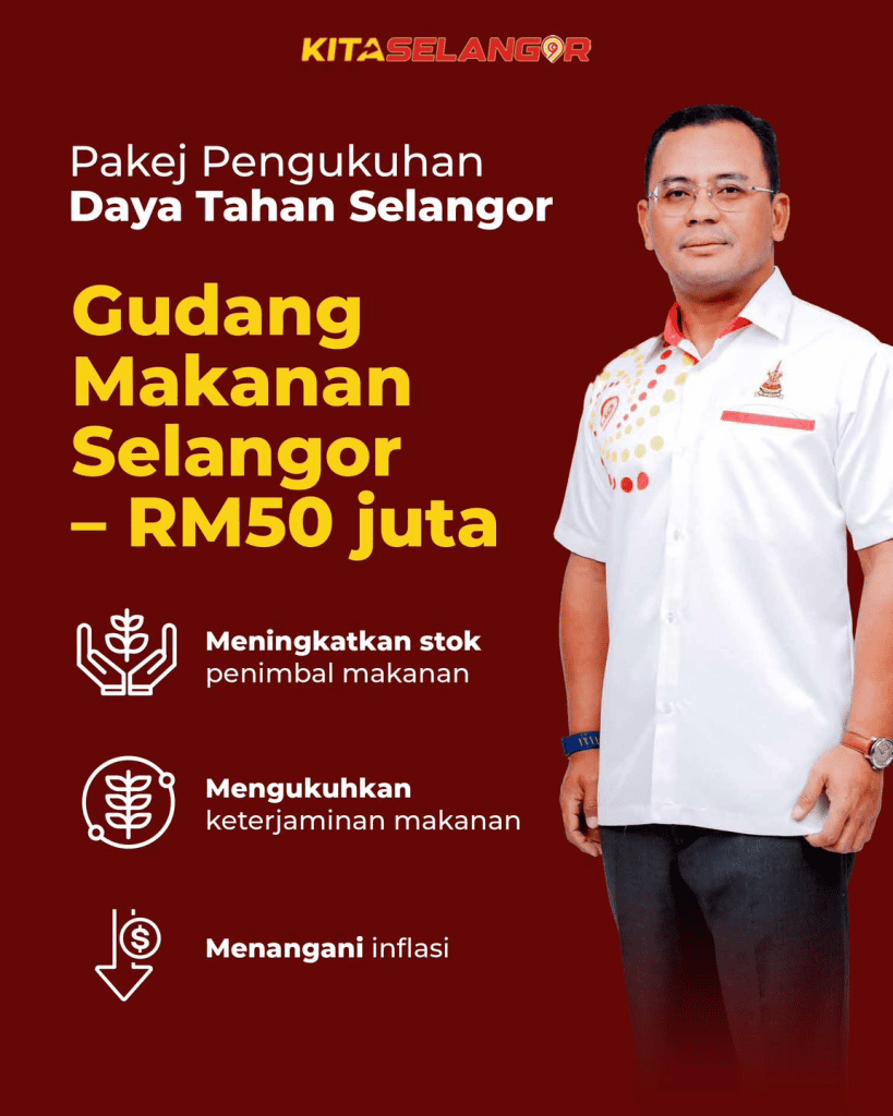 | Gudang Makanan Selangor | – Meningkatkan stok penimbal barang makanan asas seperti beras dan protein | RM50 juta |