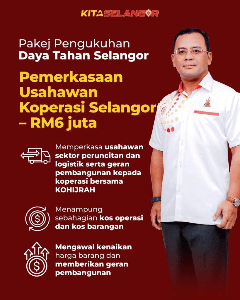 | Pemerkasaan Usahawan Koperasi Selangor | – Memperkasa usahawan dalam sektor peruncitan dan logistik – Geran pembangunan kepada koperasi melalui KOHIJRAH | RM6 juta |