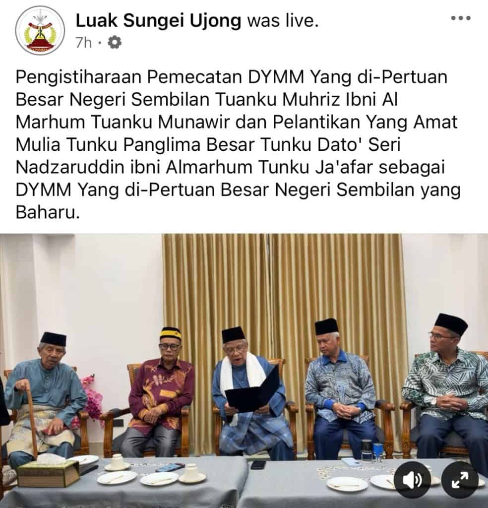 Isu berkaitan dakwaan “pemecatan Yang Dipertuan Besar (YDP) Negeri Sembilan” baru-baru ini telah menimbulkan kekeliruan dalam kalangan masyarakat.